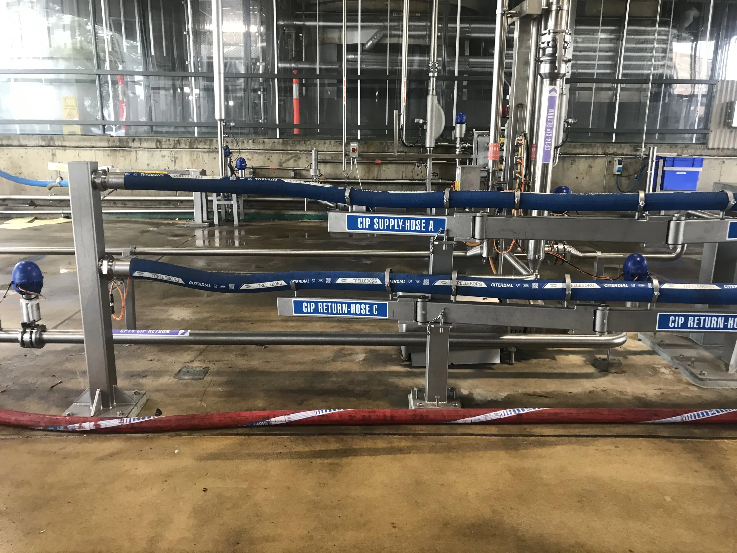 Key capabilities of the project include pipework modifications and structural design work for elevated hose arms, and installation of proximity sensors for implementation of an CIP automation upgrade.